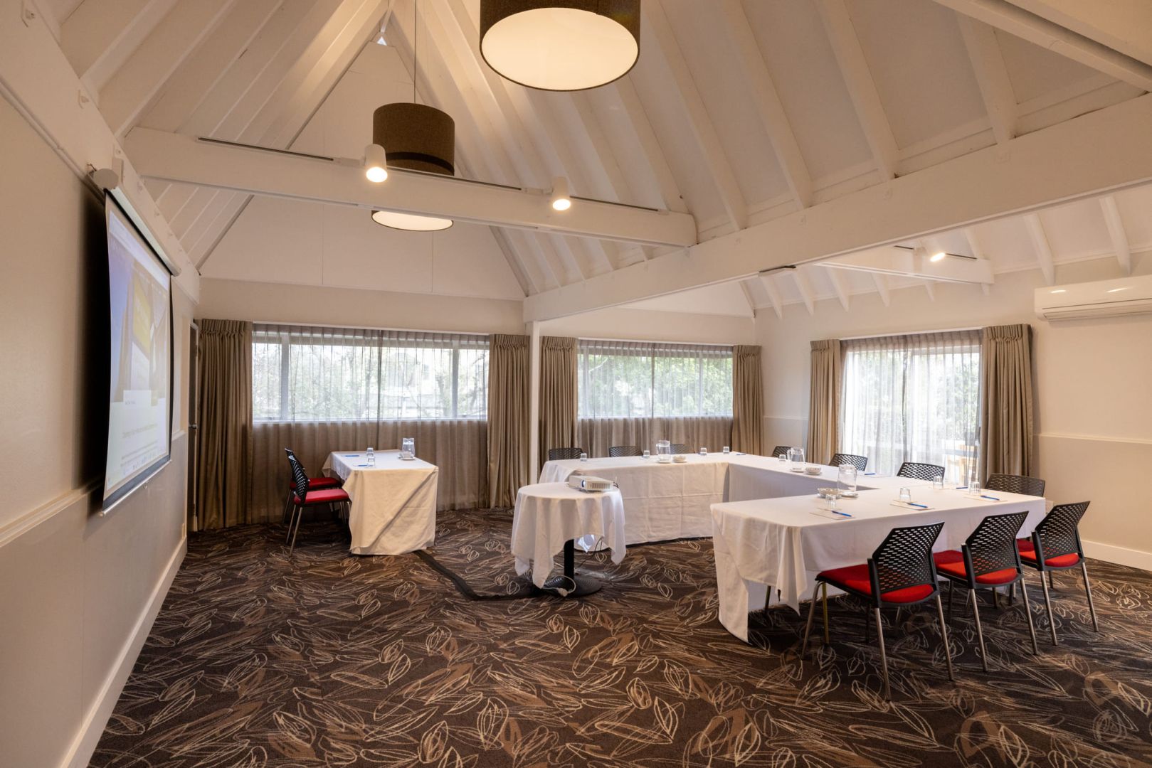 A light-filled and luminous room at our Auckland conference centre, with an exclusive outside deck that can perfectly accommodate small business group events, afternoon-teas, lunches, canapes and sit-down dinners for 40 people. Our Rose Room is flanked by lush green surrounds and offers an ideal spot from which to host your next small-to-medium gathering. The Rose Room is the perfect event venue for hire for your next Auckland meeting.